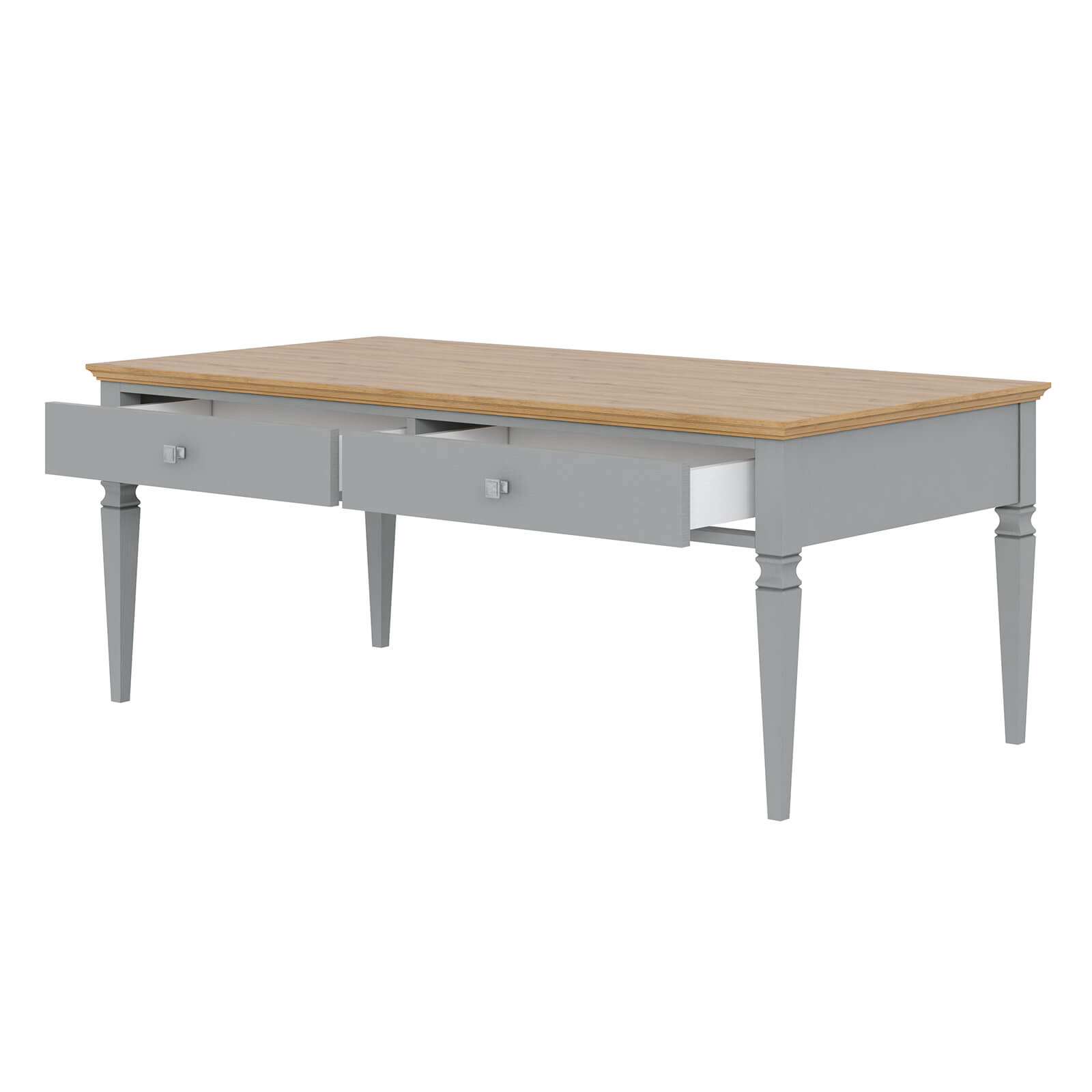 Стол журнальный «Ольса» 02. Изящный журнальный столик из коллекции «Ольса» хорошо подходит для гостиной. Сделан из натурального дерева (сосна), благодаря чему имеет благородный вид, который подчеркивает уникальный древесный рисунок. Оснащен двумя выдвижными ящиками. Особенности Размеры 1222 x 500 x 650 см; Полностью из сосны; Удобная сборка при помощи немецкой фурнитуры из комплекта; Направляющие скрытого монтажа с доводчиками, бренд BLUM; Ручки Giusti – Италия, имеют форму квадрата, сделаны из металла под старое серебро; Модель изготовлена в цвете «белый лак», «белый лак/антик 24», «серый 7042/антик 24». Особенности покрытия Многие боятся светлой мебели, так как при чаепитии нередки случаи проливания красящих напитков. Однако это изделие дополнительно защищено водными лаками и красками, которые не позволяют влаге просочиться внутрь и оставить пятна. Такая обработка препятствует также появлению грибков и плесени. Вместе с тем, она безопасна для здоровья человека, что подтверждено европейским сертификатом EN71-3. Он означает пригодность материала даже для производства детских игрушек.